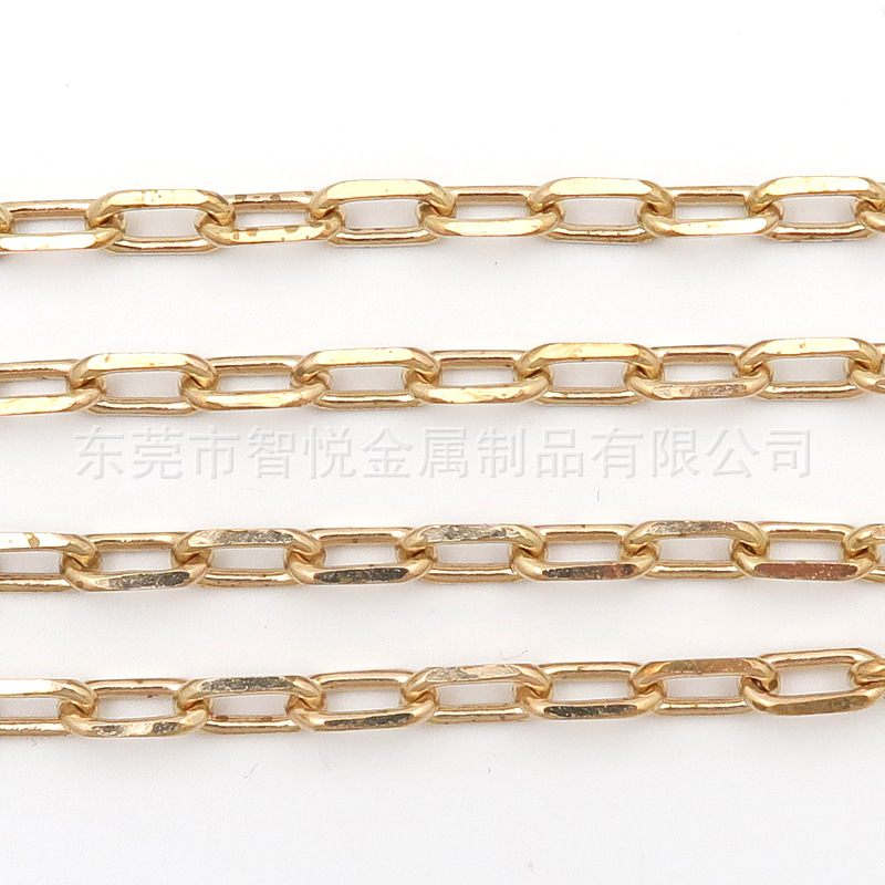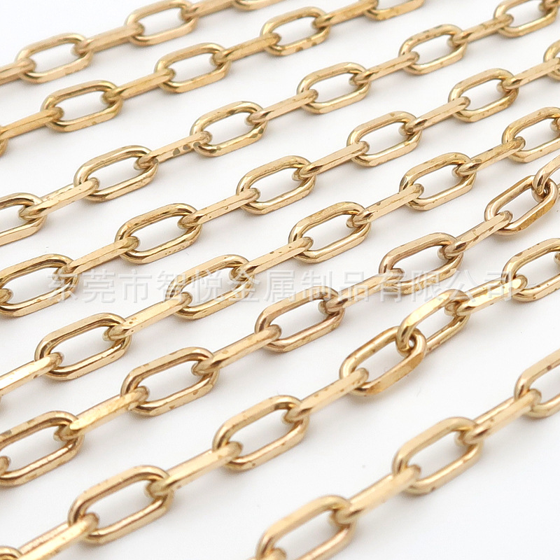 黄銅楕円側面縁切り溶接口チェーン、東莞機織チェーン工場購入、箱包半製品銅部品工場