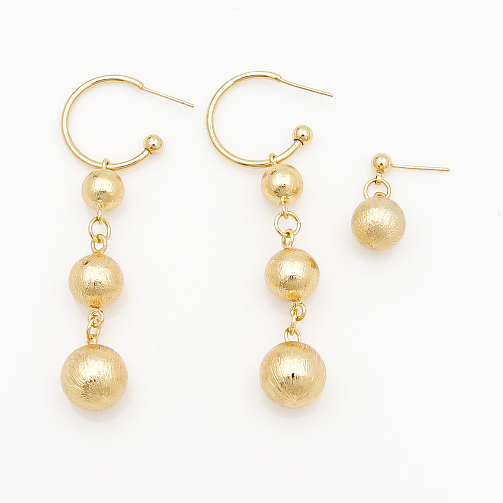 Brass gold-plated earrings with brushed round balls for face shaping, multiple wearing styles, popul