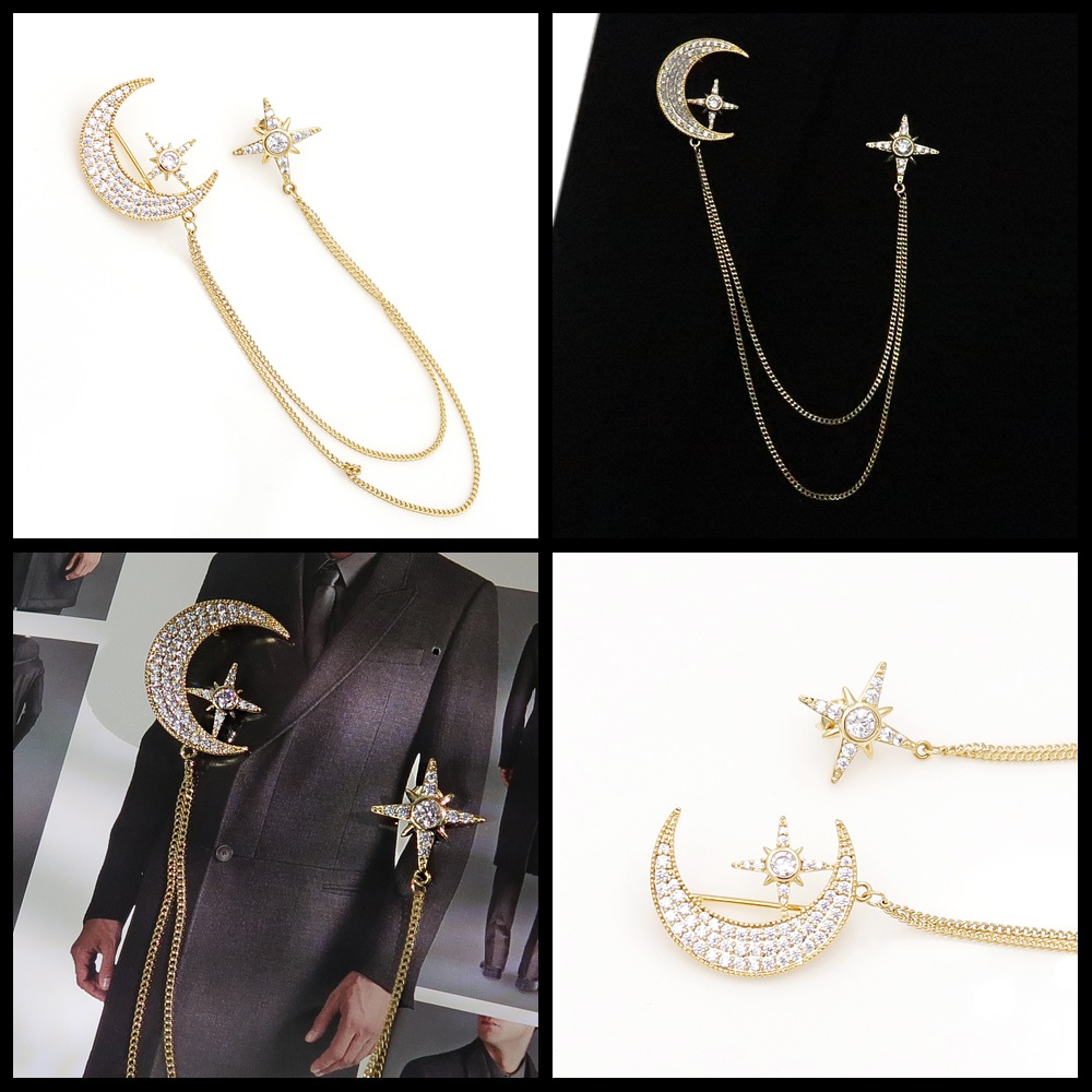 Pin accessories, badges, men's suits, brooches, copper material gold-plated, diamond inlaid, clothin